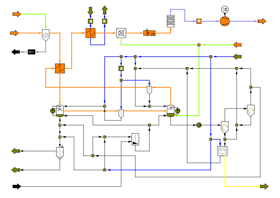 Flue gas cleaning is tightly coupled to plant operation: heat integration shapes temperature levels and condensation risk, pressure losses influence fan requirements, and upstream combustion settings affect pollutant formation. A plant-wide model helps quantify these interactions and supports consistent setpoints across operating scenarios—particularly for retrofits and flexible operation.